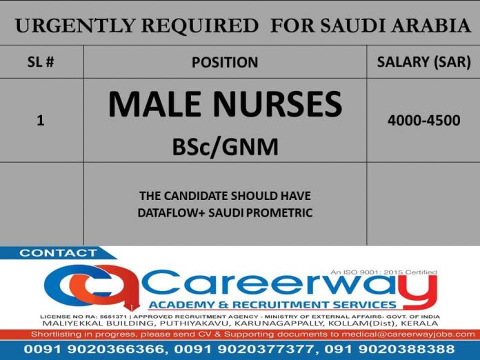 Male nurse jobs in Saudi Arabia - Urgently required