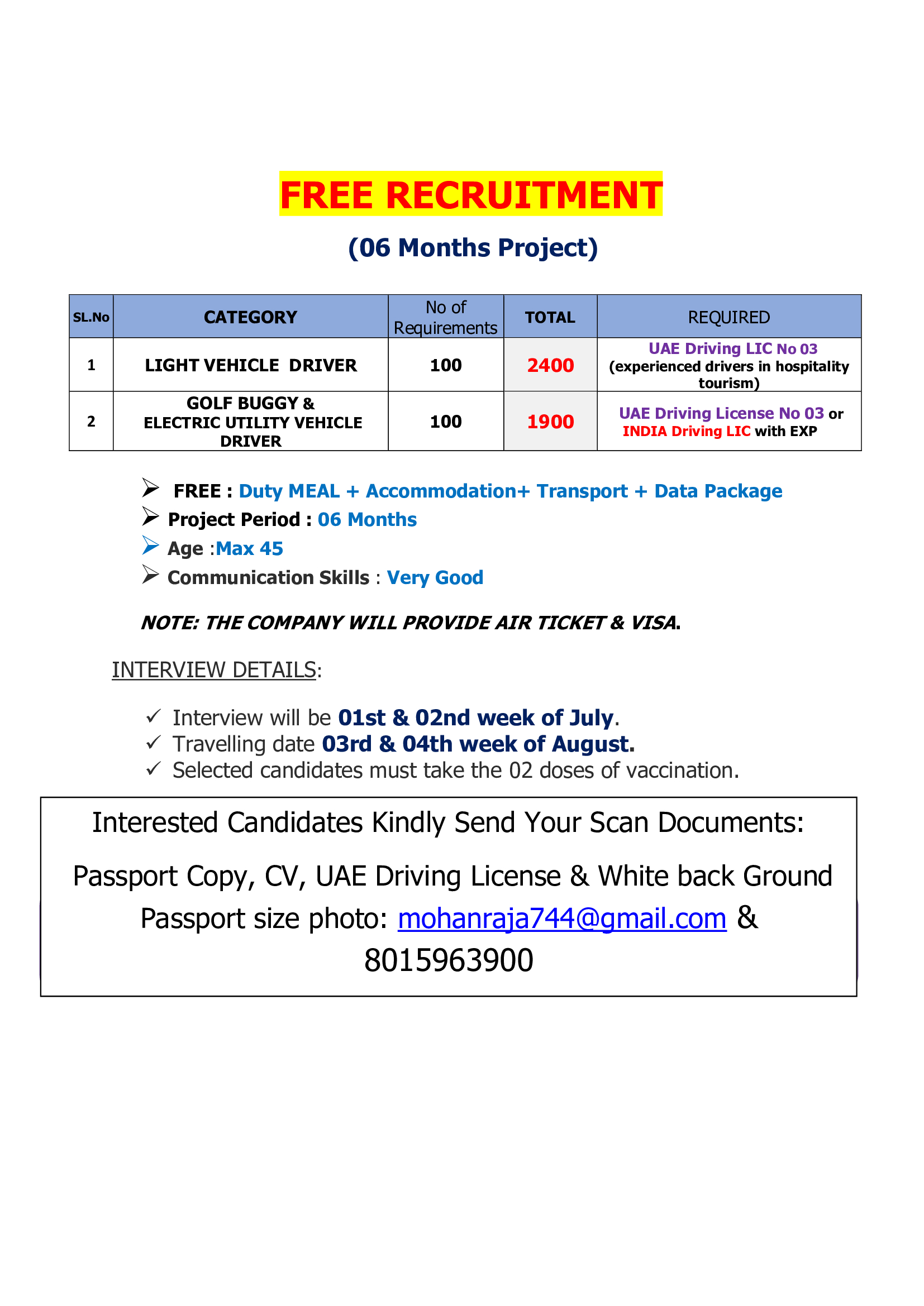 Click on the above 'Apply Button' & send your details to the recruiter, then recruiter will contact you after checking your details.