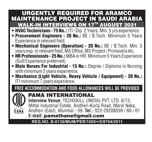Saudi Arabia job vacancy for Indian - Aramco maintenance project