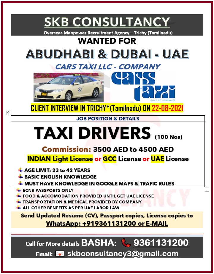 Taxi driver jobs in dubai & abu dhabi