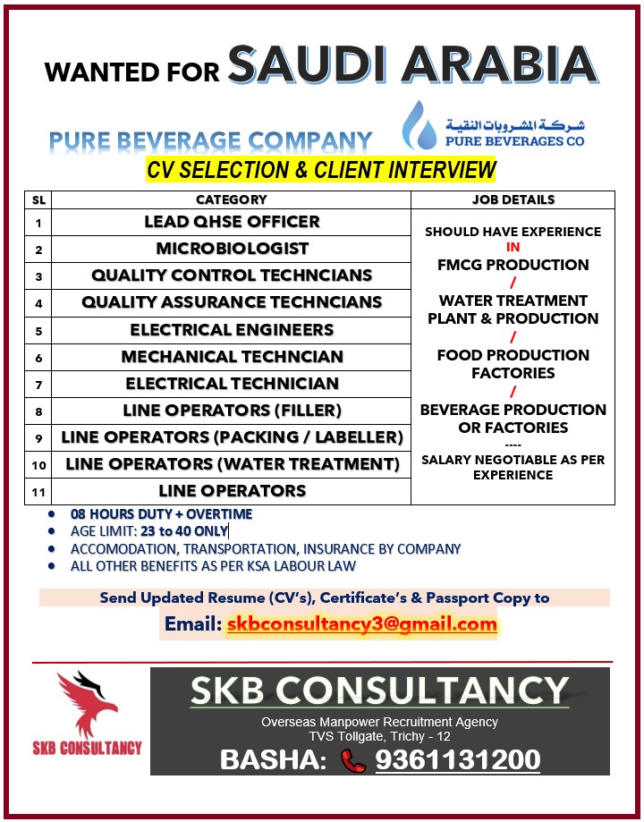 Pure beverages company saudi arabia jobs