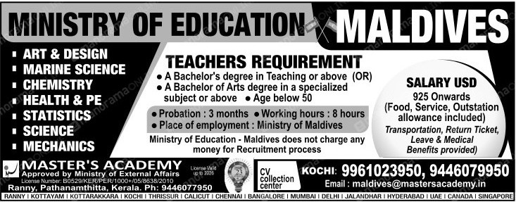 Maldives teacher recruitment 2021 - Ministry of education Maldives