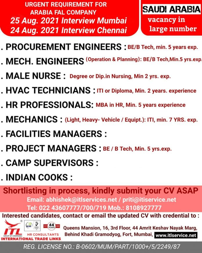 Disclaimer:- GCCWALKINS have no involvement in any recruitment process, This website just sharing job vacancies & interviews from various sources. Applicants are advised to research the bonafides of the prospective employer independently. We do NOT endorse any requests for money payments and strictly advice against sharing personal or bank related information. If you suspect any fraud or malpractice, email us at gccwalkins@gmail.com