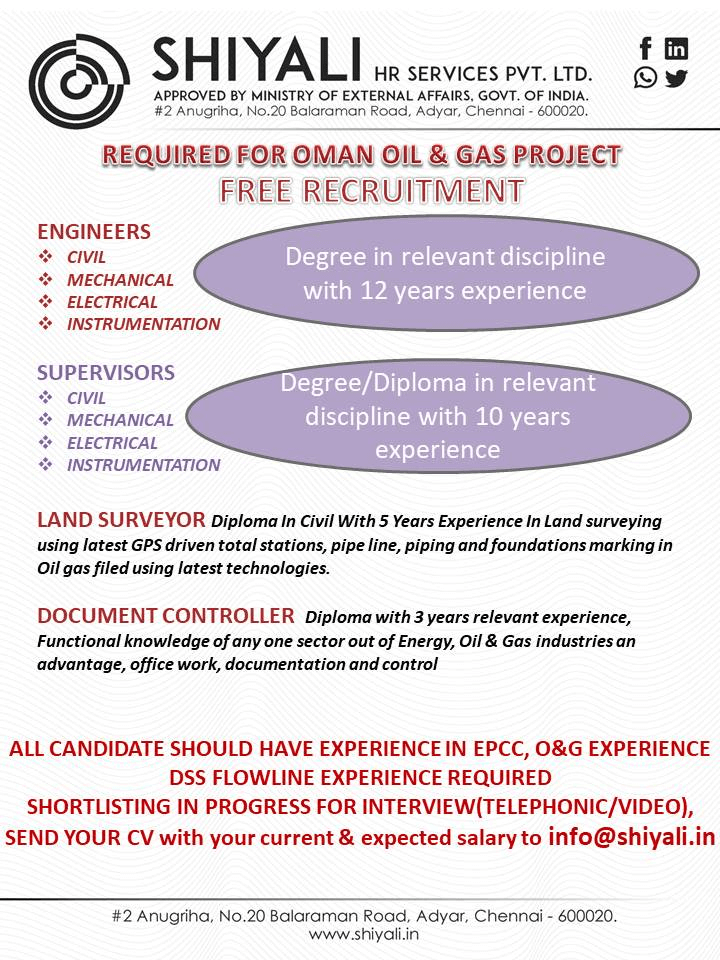 Oman jobs 2021 for Indian - Free recruitment to oil & gas project