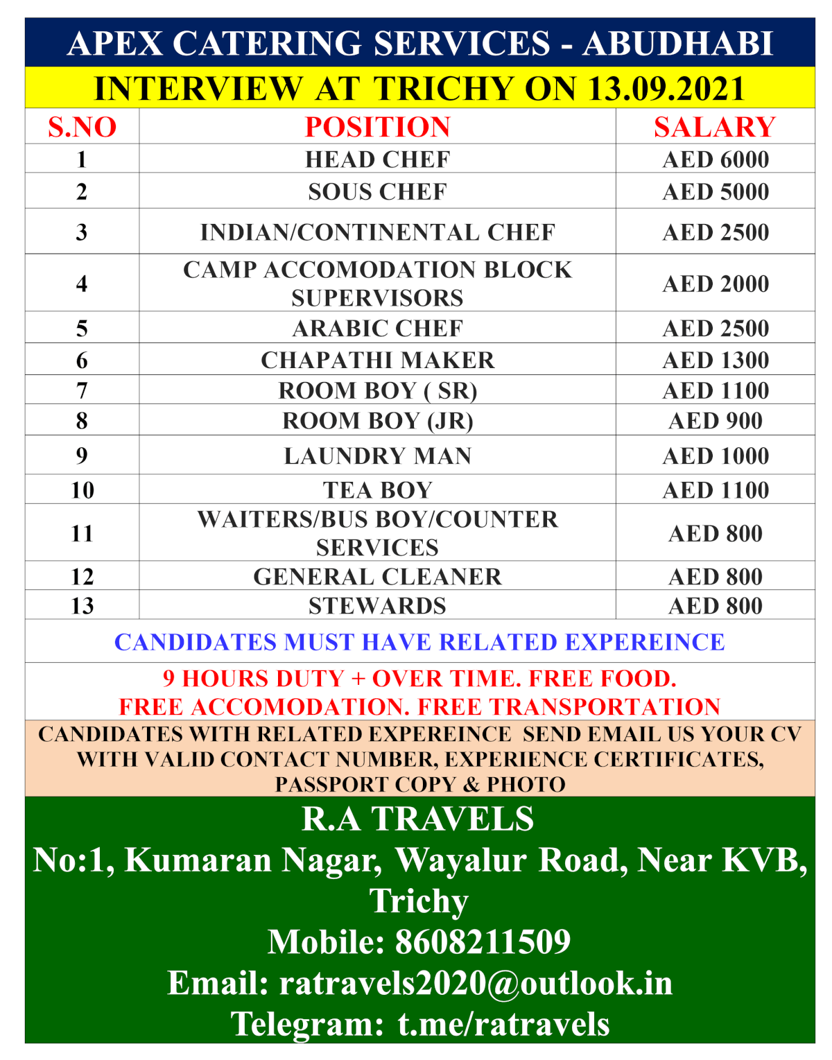 Apex catering Abu Dhabi job vacancy - Large recruitment