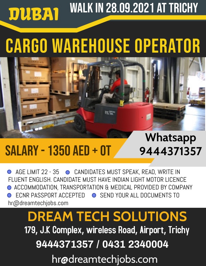 Cargo warehouse operator job in Dubai