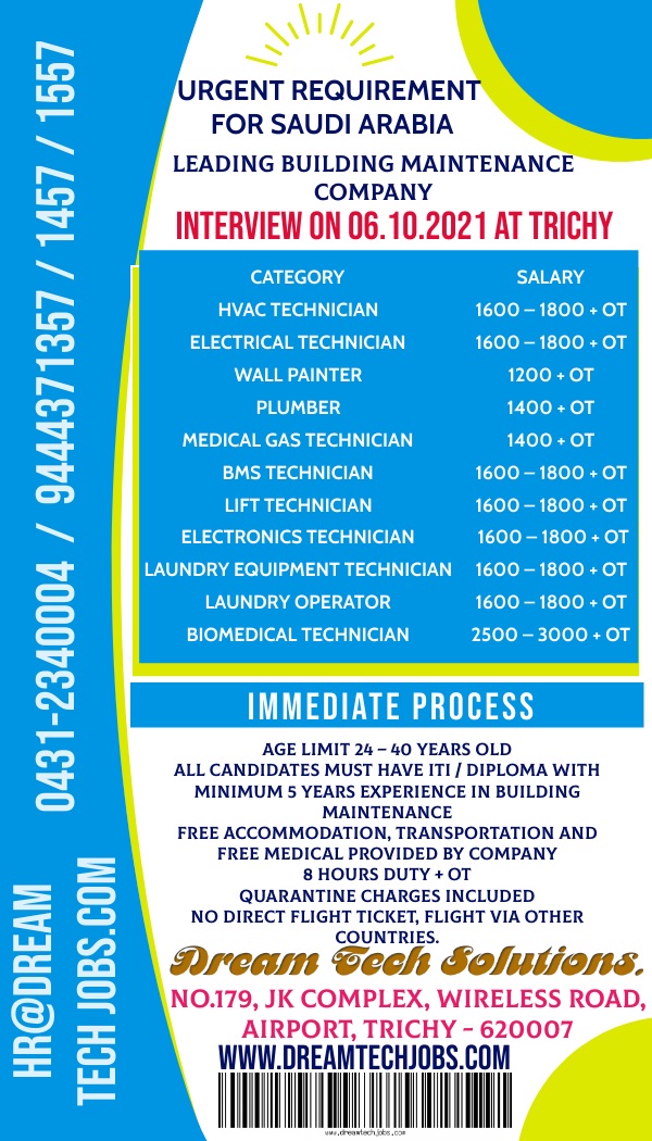 | HVAC technician | 1600 - 1800 SAR | |