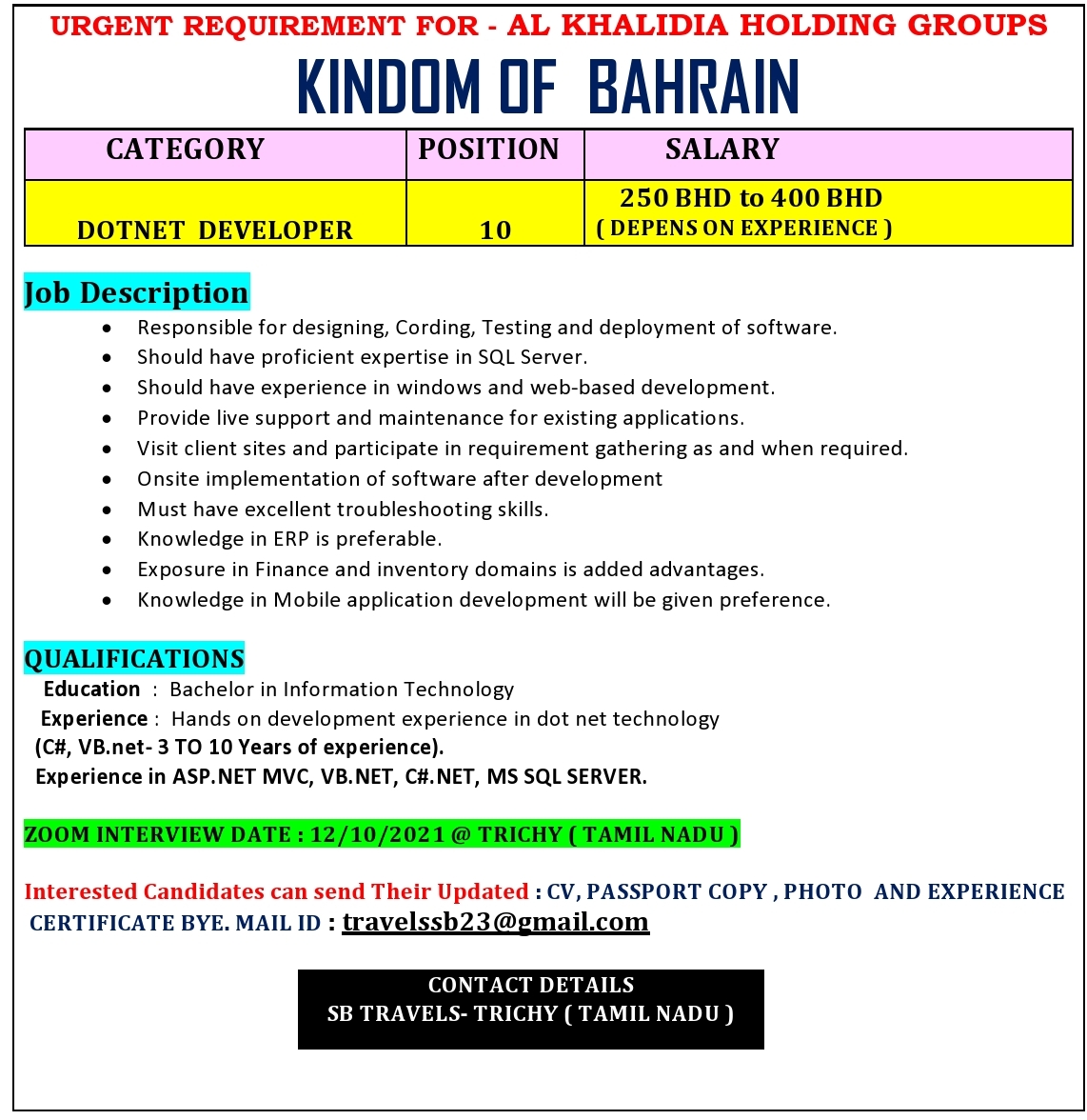 Company: Urgently required for al khalidia holding groups, Bahrain