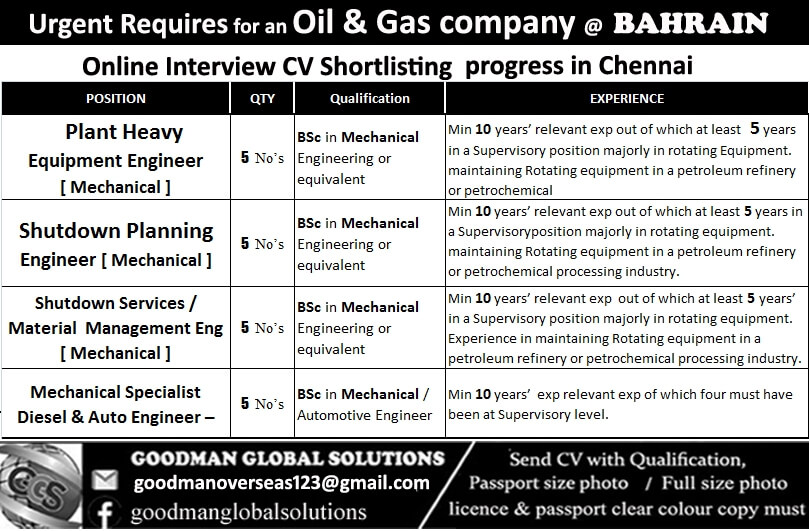 Shutdown services/material management engineer (mechanical) | 5 | |