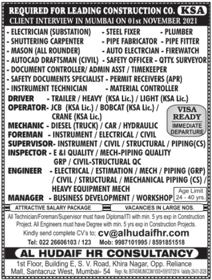 Disclaimer:- GCCWALKINS have no involvement in any recruitment process, This website just sharing job vacancies & interviews from various sources. Applicants are advised to research the bonafides of the prospective employer independently. We do NOT endorse any requests for money payments and strictly advice against sharing personal or bank related information. If you suspect any fraud or malpractice, email us at gccwalkins@gmail.com