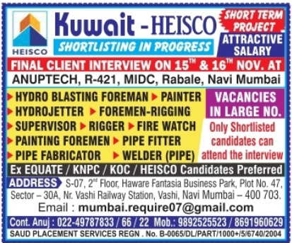 Ex Equate/KNPC/KOC/HEISCO candidates preferred