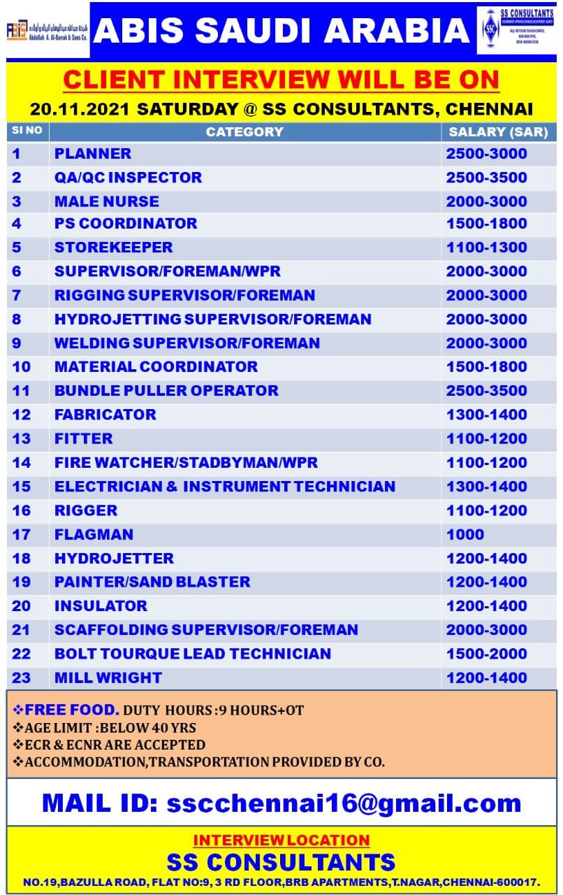 Walk-in-interview on 20th Nov 2021 at SS consultants, Chennai