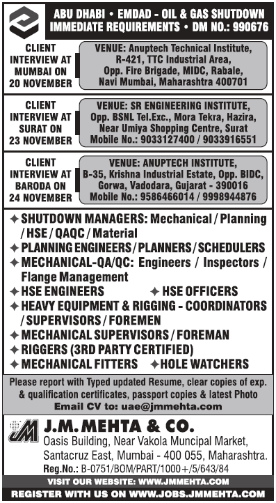 | Shutdown managers: Mechanical/planning/HSE/QAQC/material | ||