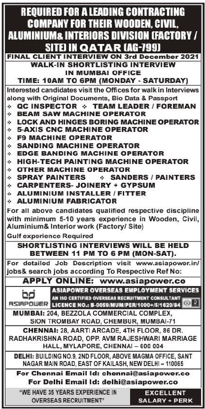 Disclaimer:- GCCWALKINS have no involvement in any recruitment process, This website just sharing job vacancies & interviews from various sources. Applicants are advised to research the bonafides of the prospective employer independently. We do NOT endorse any requests for money payments and strictly advice against sharing personal or bank related information. If you suspect any fraud or malpractice, email us at gccwalkins@gmail.com