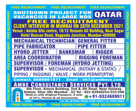 Shutdown project in qatar - Free recruitment