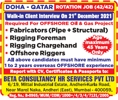 Walk-in-interview on 21st Dec 2021 at Beta consultancy hr services pvt. ltd, 6/19, mittal industrial estate, andheri - kurla road, near marol naka, andheri (east), mumbai - 400059