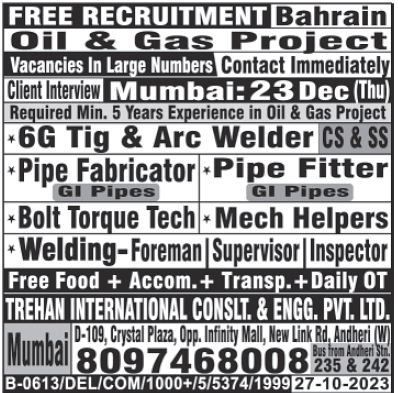 Free recruitment to bahrain - Oil & gas project