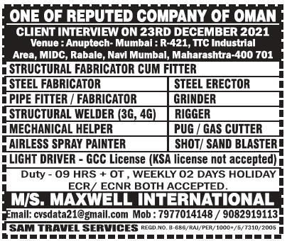Oman job vacancy for indian - Walk in interview