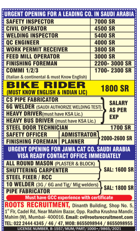 Saudi Arabia job vacancy for Indian - Urgent opening