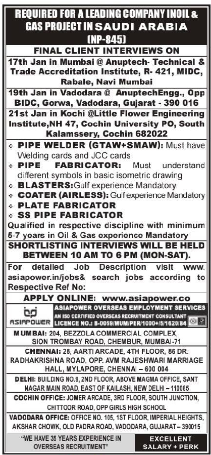 Disclaimer:- GCCWALKINS have no involvement in any recruitment process, This website just sharing job vacancies & interviews from various sources. Applicants are advised to research the bonafides of the prospective employer independently. We do NOT endorse any requests for money payments and strictly advice against sharing personal or bank related information. If you suspect any fraud or malpractice, email us at gccwalkins@gmail.com