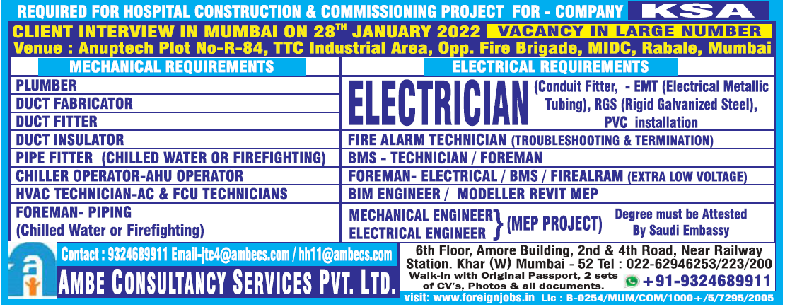 Saudi jobs for Indian - Hospital construction & commissioning project