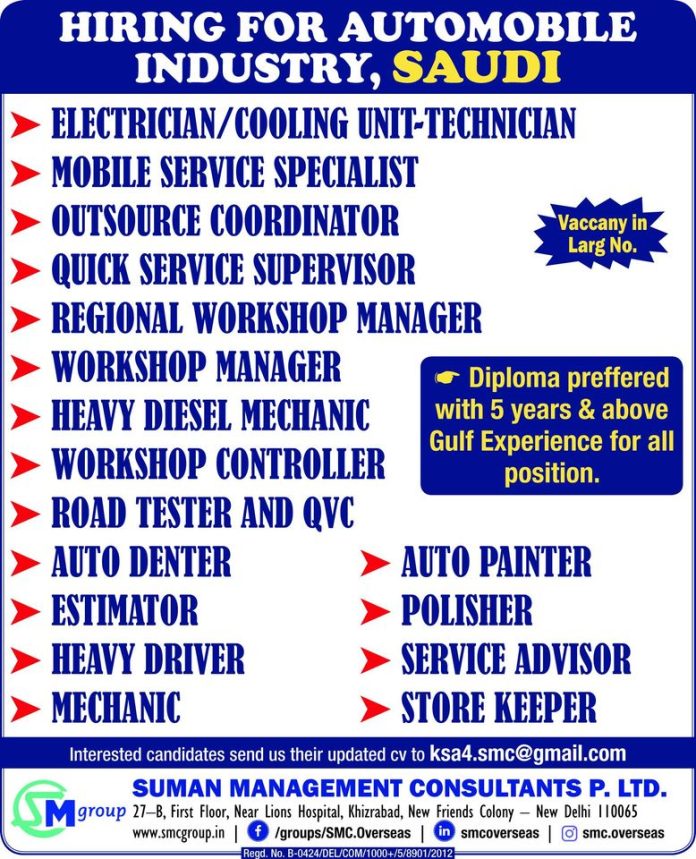 Automotive jobs in Saudi Arabia - Urgent hiring