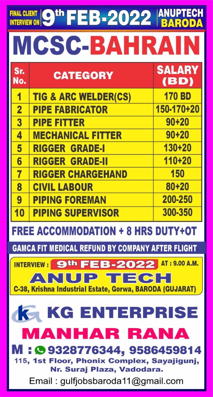 Email: gulfjobsbaroda11@gmail.com