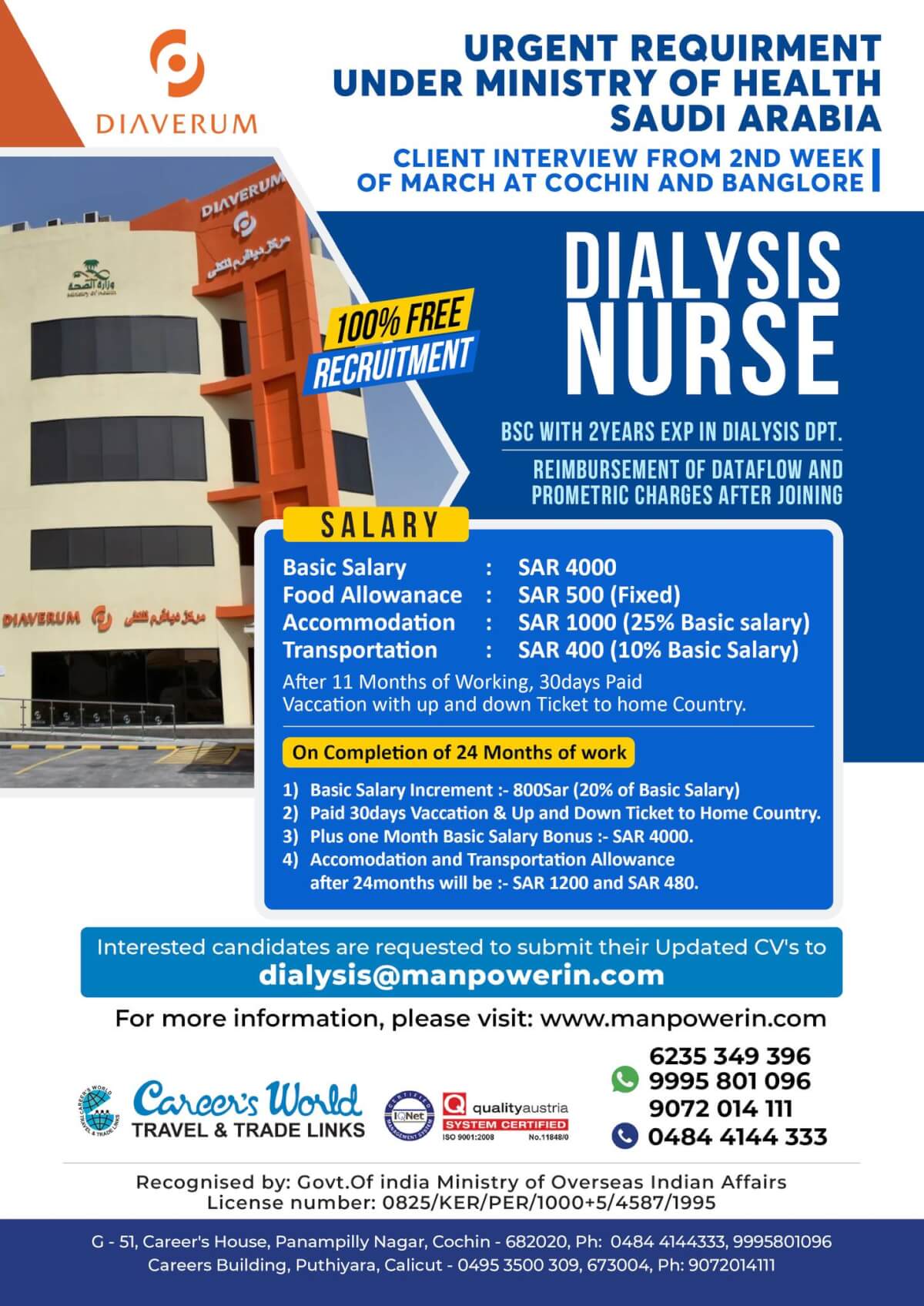 Nurse vacancy in Saudi 2022 - Free recruitment