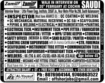 | Inspector: QC coating / QC welding / QC mechanical material receiving / QC E&I / scaffolding / piping & welding / electrical / instrumentation / painting | ||