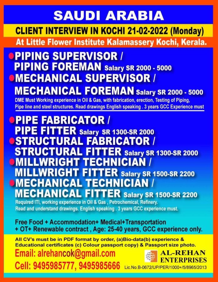 Saudi Arabia job vacancy for Indian - Urgent hiring
