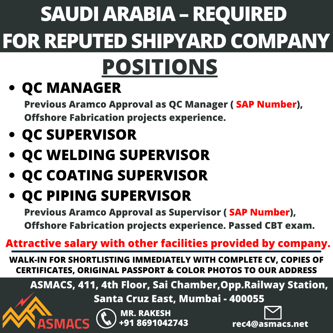 QC inspector jobs in Saudi Arabia - Shipyard company
