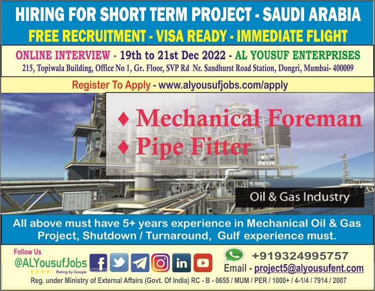 Disclaimer:- GCCWALKINS have no involvement in any recruitment process, This website just sharing job vacancies & interviews from various sources. Applicants are advised to research the bonafides of the prospective employer independently. We do NOT endorse any requests for money payments and strictly advice against sharing personal or bank related information. If you suspect any fraud or malpractice, email us at gccwalkins@gmail.com