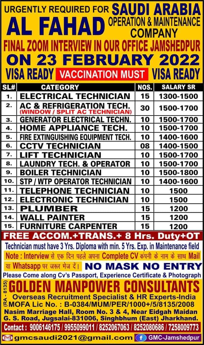 Disclaimer:- GCCWALKINS have no involvement in any recruitment process, This website just sharing job vacancies & interviews from various sources. Applicants are advised to research the bonafides of the prospective employer independently. We do NOT endorse any requests for money payments and strictly advice against sharing personal or bank related information. If you suspect any fraud or malpractice, email us at gccwalkins@gmail.com