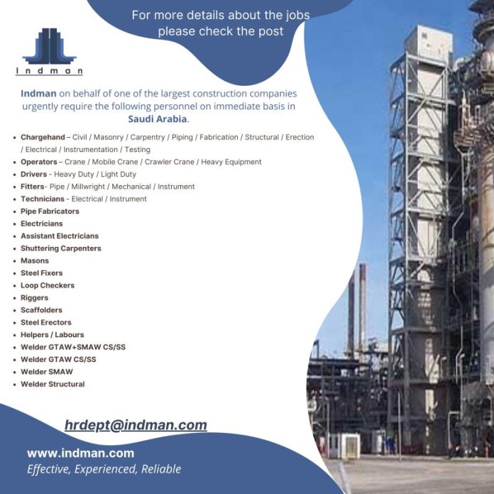 Saudi Arabia construction company jobs - Urgently required
