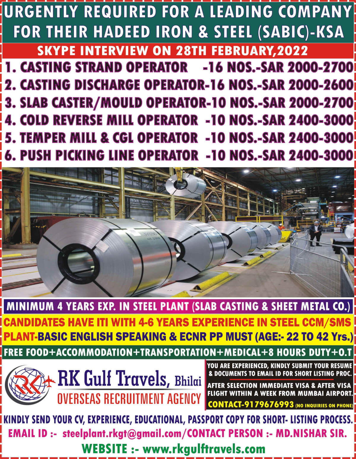 Hiring for Hadeed iron & steel company Saudi Arabia