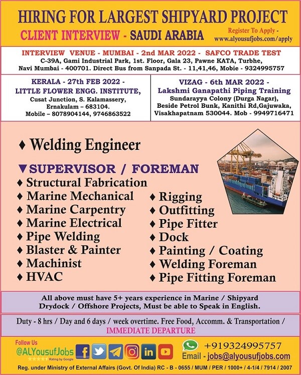 Disclaimer:- GCCWALKINS have no involvement in any recruitment process, This website just sharing job vacancies & interviews from various sources. Applicants are advised to research the bonafides of the prospective employer independently. We do NOT endorse any requests for money payments and strictly advice against sharing personal or bank related information. If you suspect any fraud or malpractice, email us at gccwalkins@gmail.com