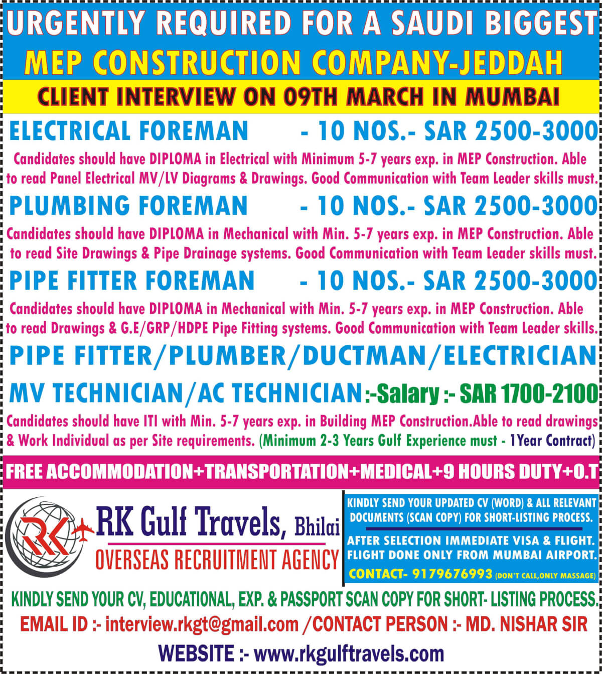 MEP construction company in saudi - Urgently required