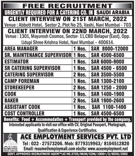Saudi catering company job vacancy - Free recruitment