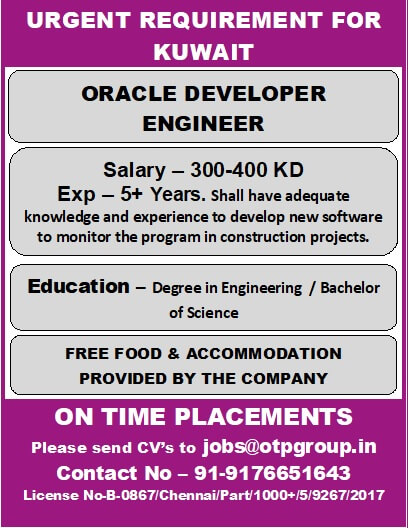 Oracle Developer Engineer Job in Kuwait