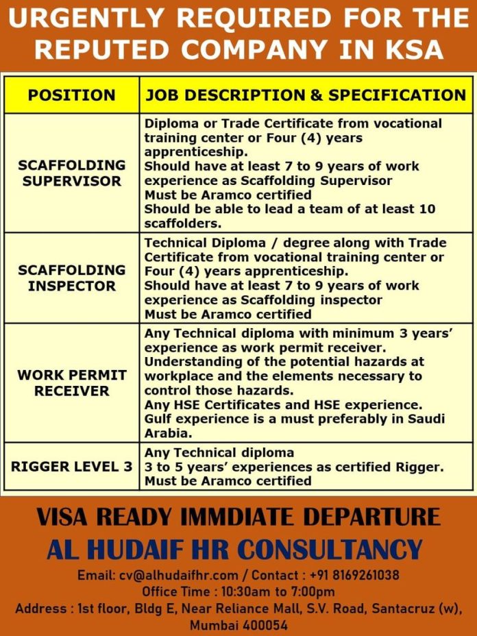 Wanted for a reputed company in KSA