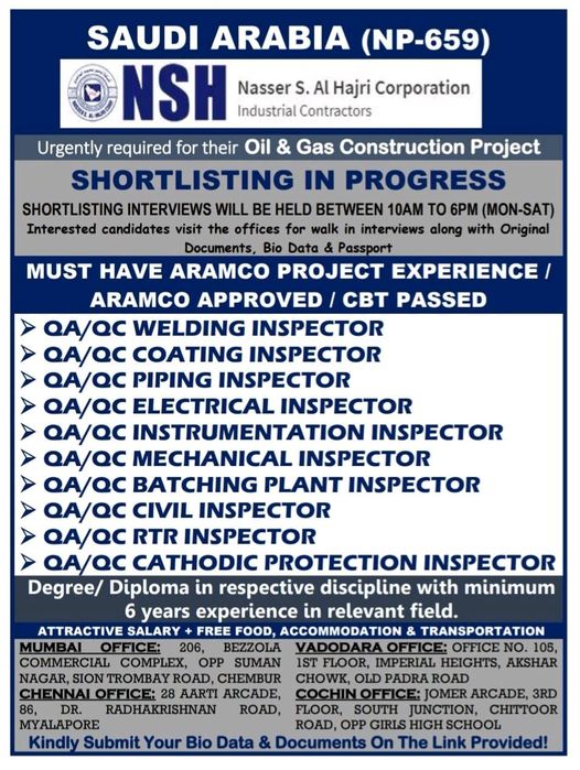 QC Inspector jobs in Saudi Arabia - Oil & Gas Project