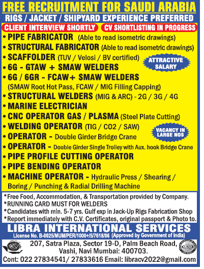 Free recruitment for Saudi arabia