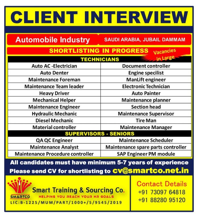 Automobile Jobs in Saudi Arabia - Large recruitment