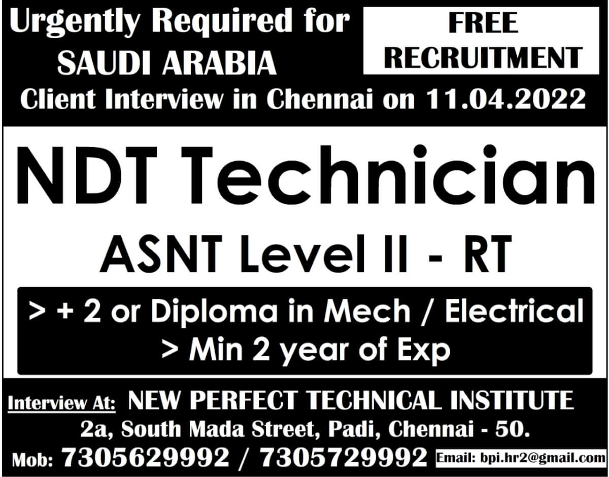 NDT Technician Jobs in Saudi Arabia - Free recruitment