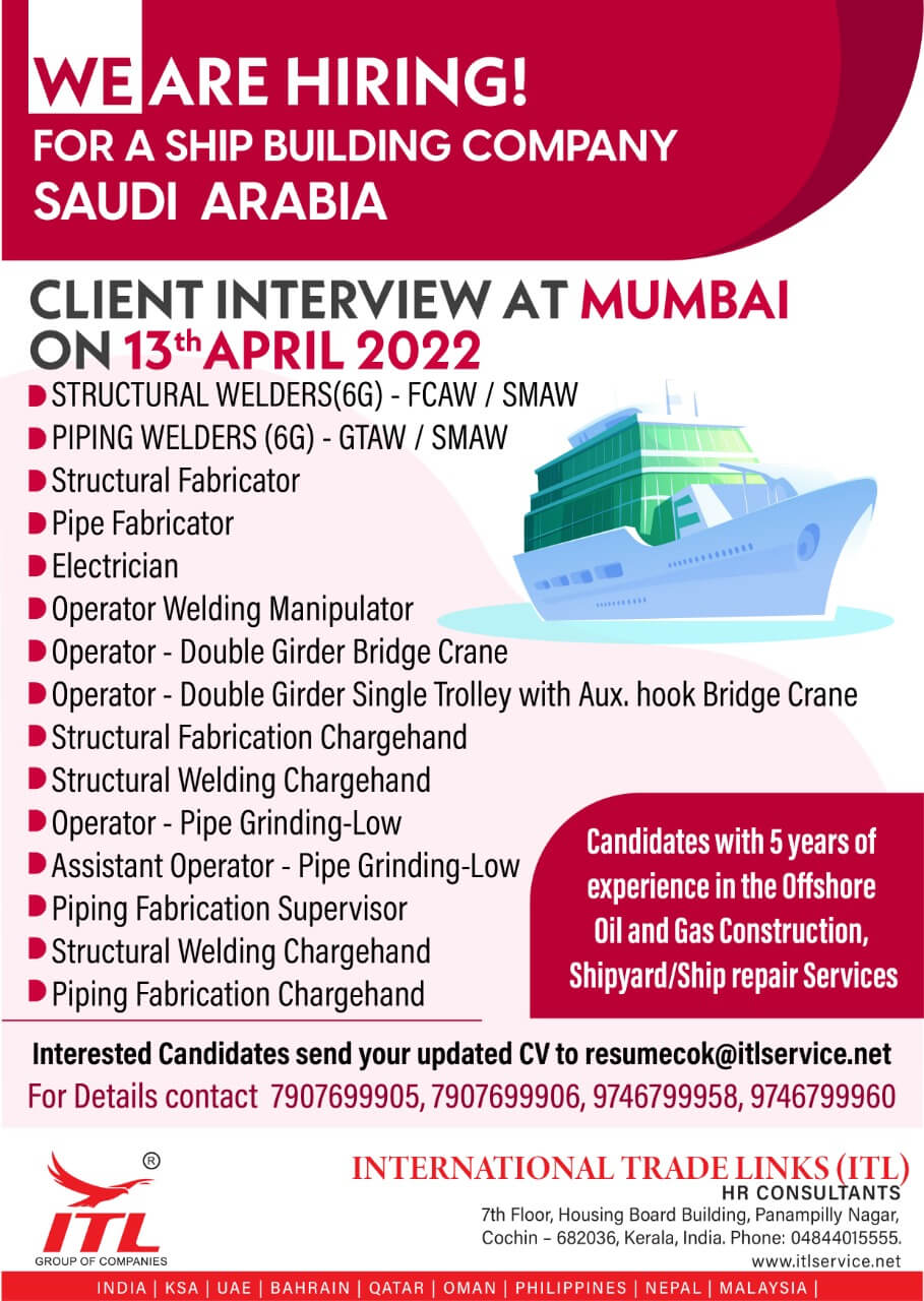 Shipbuilding company jobs in Saudi Arabia - Urgent hiring