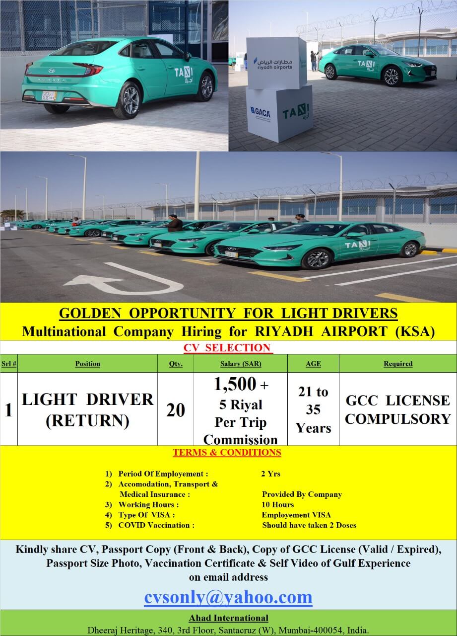 Light Driver jobs in Saudi Arabia 2022 - Multinational company hiring for Riyadh Airport