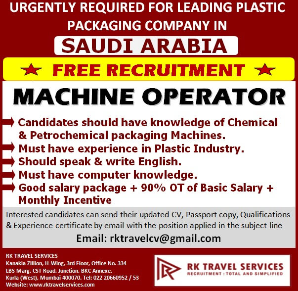Machine Operator jobs in Saudi Arabia - Free recruitment