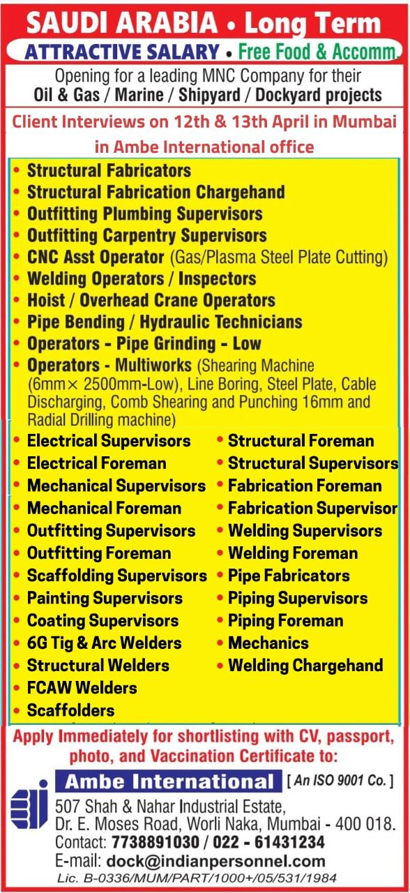Walk-in-interview on 12th and 13th April 2022 at Ambe international, 507, shah & nahar industrial estate, dr e moses road, worli naka, mumbai, maharashtra - 400018