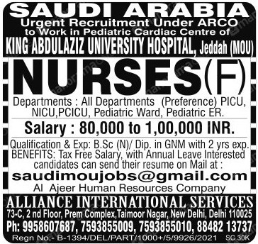 Nursing Jobs in Saudi Arabia - King abdulaziz university Hospital