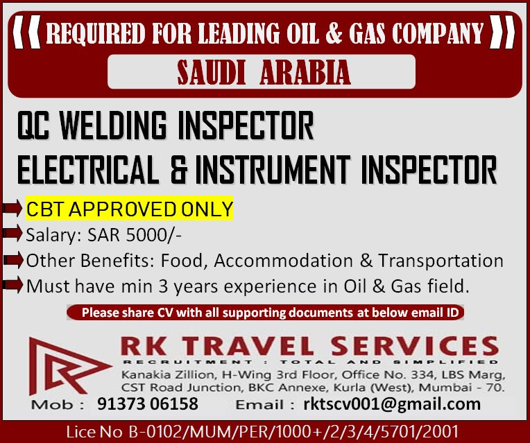 Disclaimer:- GCCWALKINS have no involvement in any recruitment process, This website just sharing job vacancies & interviews from various sources. Applicants are advised to research the bonafides of the prospective employer independently. We do NOT endorse any requests for money payments and strictly advice against sharing personal or bank related information. If you suspect any fraud or malpractice, email us at gccwalkins@gmail.com